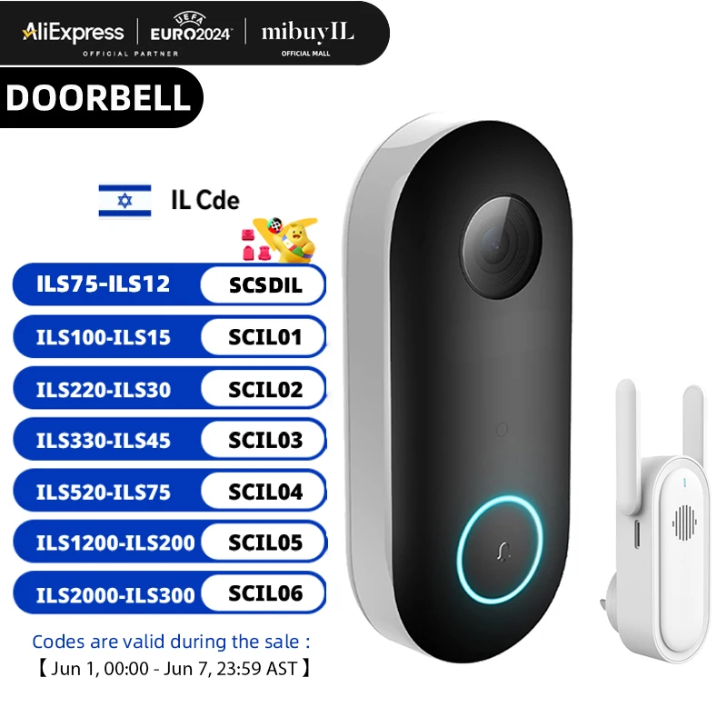Imilab 2.5k vifi מצלמת אבטחה דלת פעמון 5200mah זיהוי אנושי מדויק איתור אנושי מקומי ערנות מיידית【Code:CSIL02】